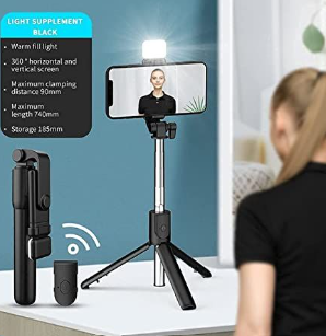 R1S Extendable Flash 3-in-1 Selfie Stick Tripod with Bluetooth Remote